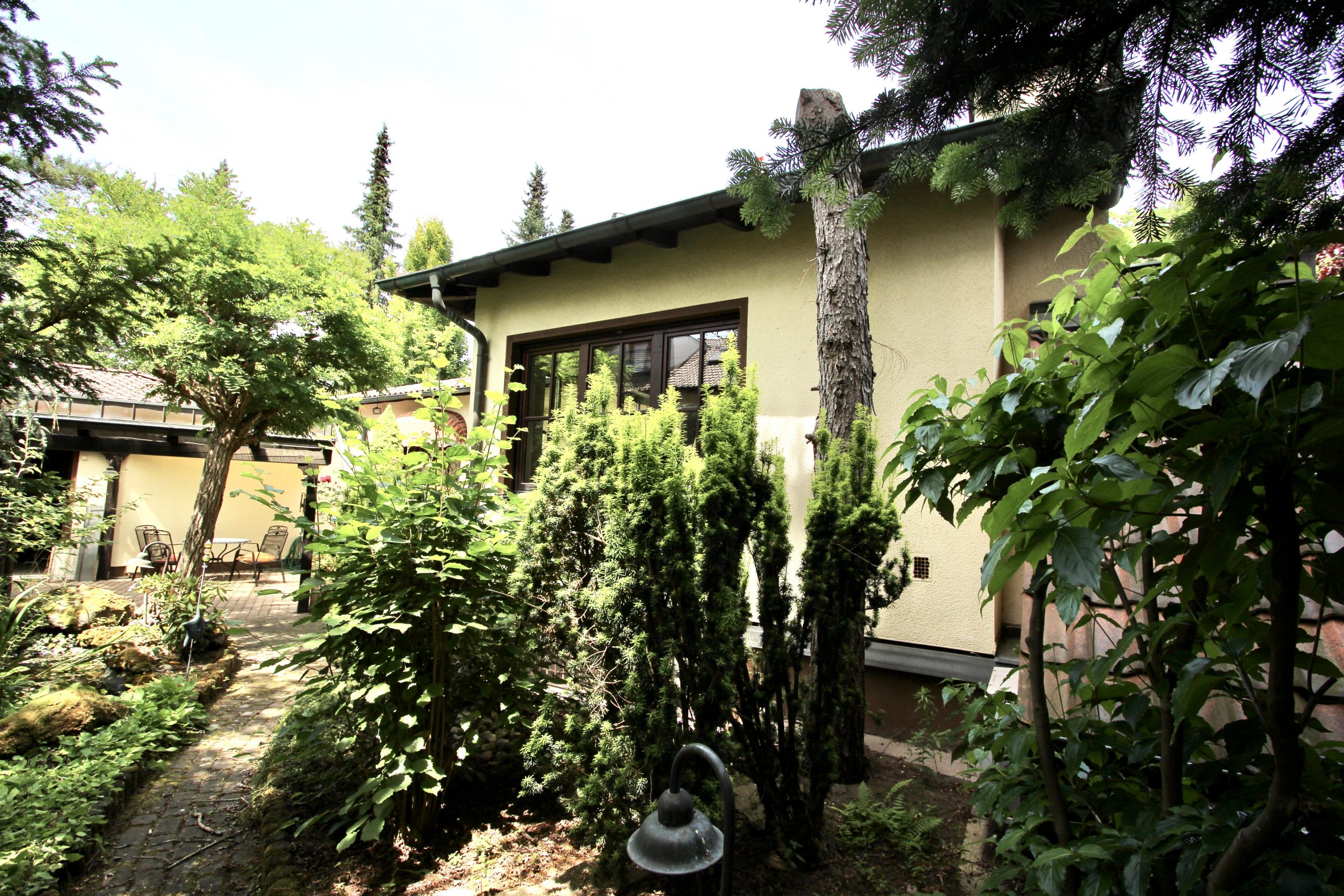In einer der begehrtesten Wohnlagen von Erlangen bieten wir Ihnen exklusiv diesen charmanten, voll unterkellerten Bungalow mit einzigartigen Ausstattungsmerkmalen zum Kauf an. Das Anwesen liegt in einer ruhigen Anliegerstraße in bester Nachbarschaft und überzeugt neben der exzellenten Lage durch seine Privatsphäre, Großzügigkeit und hochwertigen Ergänzungsbauten. Der Bungalow wurde im Jahr 1970 in solider Bauweise errichtet und bietet im Erdgeschoss eine gut geschnittene Wohnfläche mit vier Zimmern. Küche, Bad, Diele und Gäste-WC. Im voll ausgebauten Keller wurden weitere Flächen als Wohnraum genutzt, darunter ein Zimmer mit zwei Fenstern, zwei Ankleiden, ein Bad mit Dusche und der Partykeller. Es schließt sich an ein Wäscheraum und ein Heizungsraum.